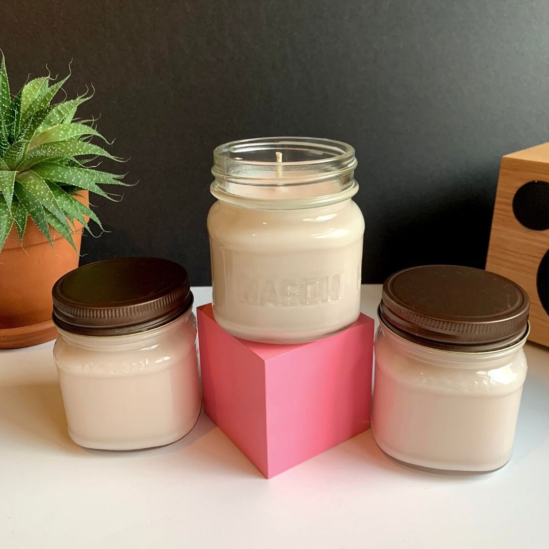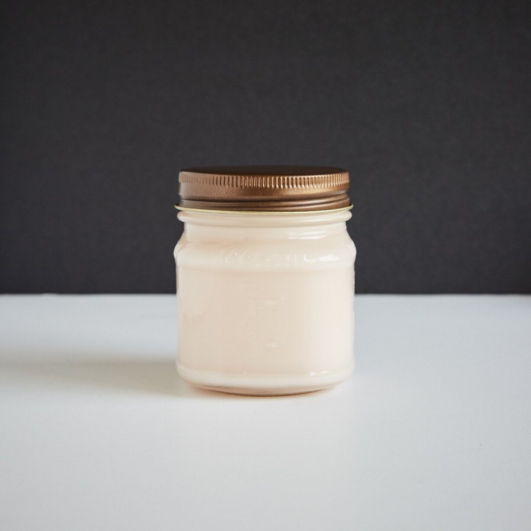 Our 15.6 oz candle is made with all-natural soy wax. The Red Currant Mason Candle is infused with natural essential oils: Cassis Bud, Grapefruit, and Lemon.