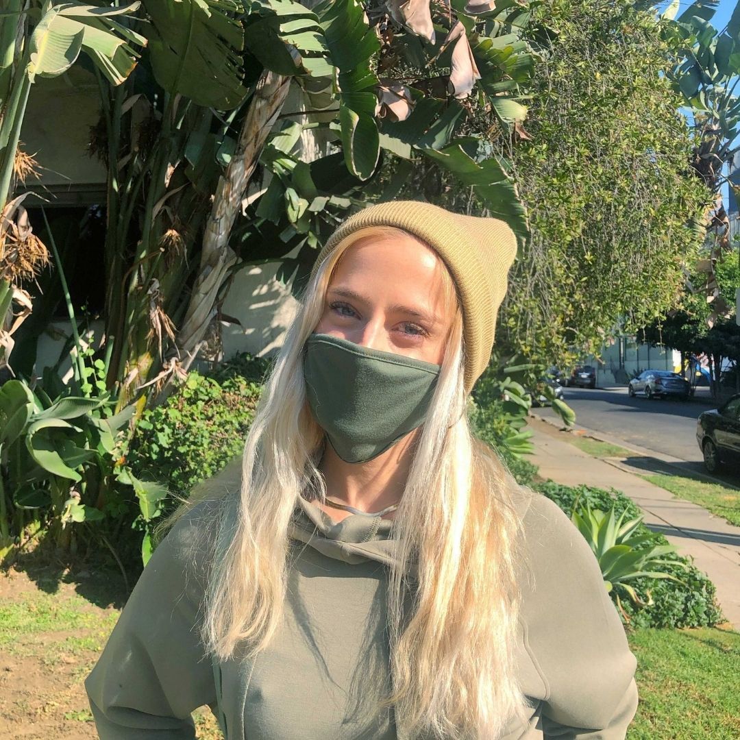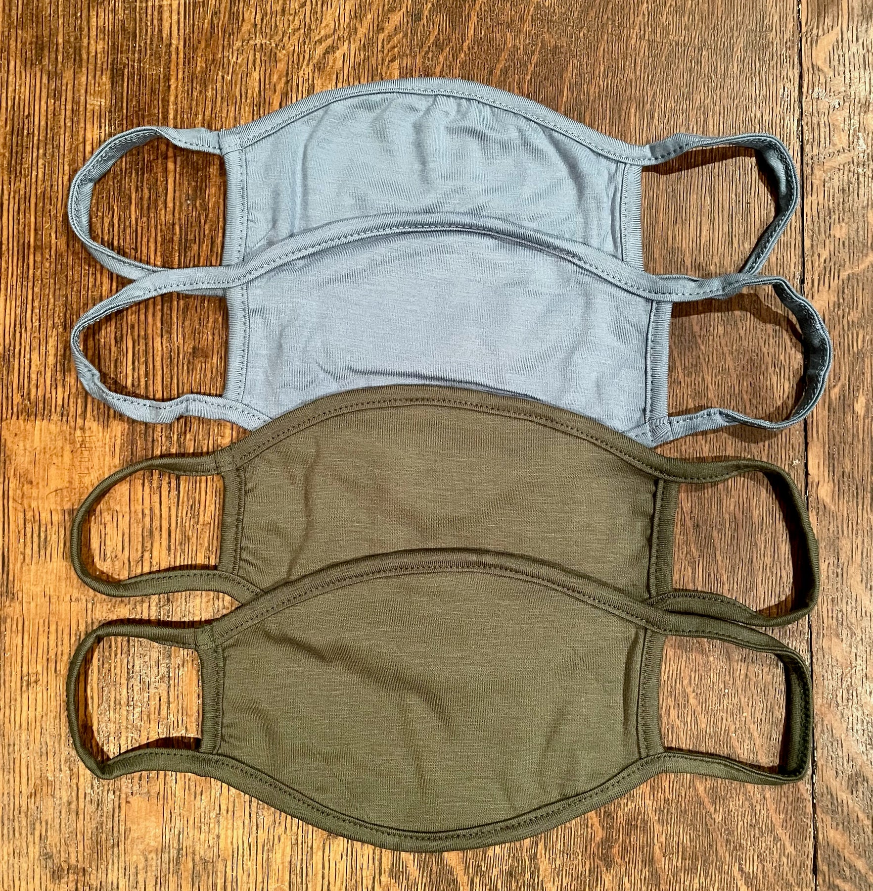 This 4-Pack of masks is made with a cotton jersey material and comes with 2 blue and 2 olive masks. Each mask is made with a 100% cotton lining and double layer fabric in accordance with the California Department of Public Health guidelines. These masks not only help to keep you and your loved ones safe but also help to provide jobs for our team during this difficult time! Stay safe. - The Yoga Society Team