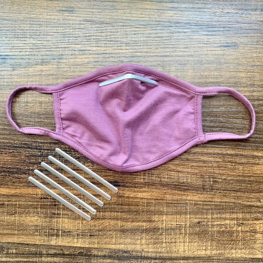 Use these nose wires to mold your mask to your face and keep it in place. The adhesive backing sticks to all Yoga Society masks or can be sewn to the exterior or interior of your face mask. Made from aluminum, this nose wire is rust-free, tarnish-free, and can be easily bent to mold to shape of your nose.