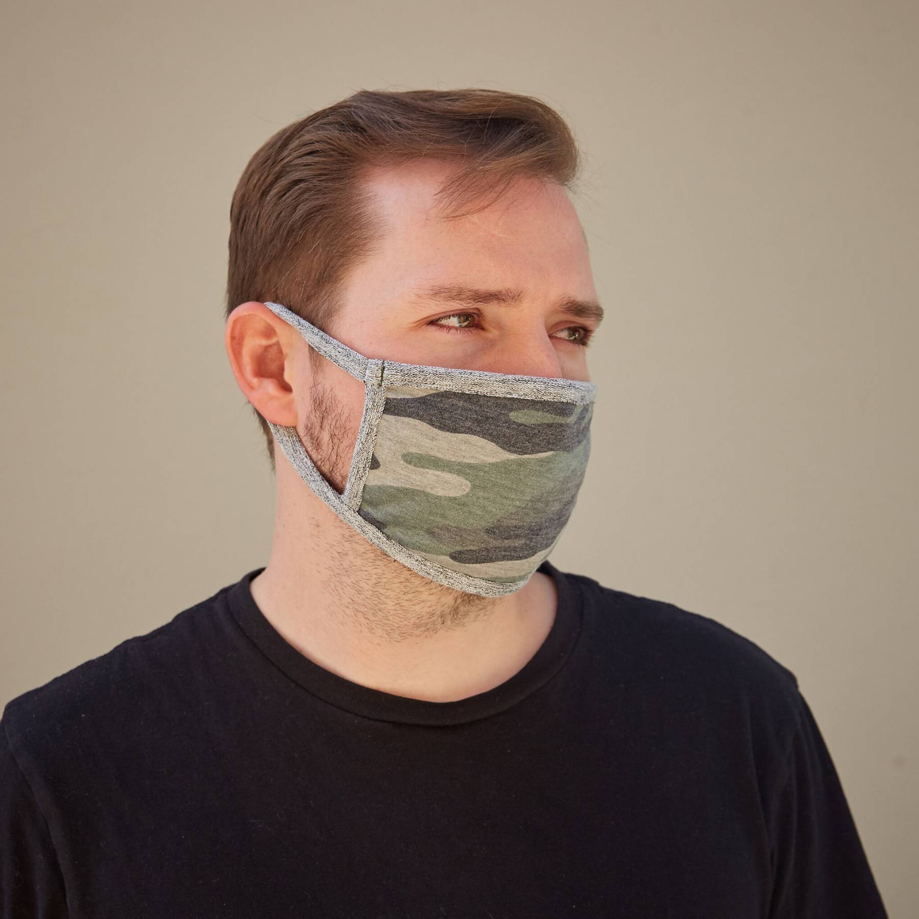 This 3-Pack of masks is made with a french terry material and features a camo print design. Each mask is made with a 100% cotton lining and double layer fabric in accordance with the California Department of Public Health guidelines. These masks not only help to keep you and your loved ones safe but also help to provide jobs for our team during this difficult time! Stay safe. - The Yoga Society Team